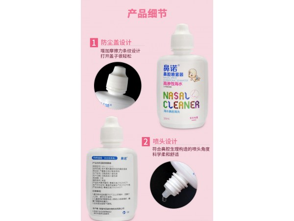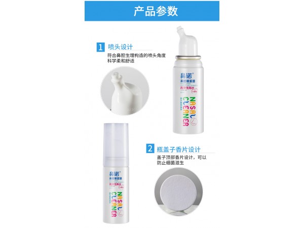 可調(diào)式鼻腔清洗器主要由噴霧罐(瓶)、內(nèi)膽(內(nèi)裝護(hù)理液)、噴嘴及保護(hù)蓋組成。手動型:由手動型清洗器和鼻腔清洗劑組成,手動型清洗器由噴瓶容杯、噴瓶上蓋、噴霧瓶、吸管、噴頭組成;鼻腔清洗劑由氯化鈉、氯化鉀、氯化鈣、氯化鎂、硫酸鎂、枸櫞酸鉀組成。