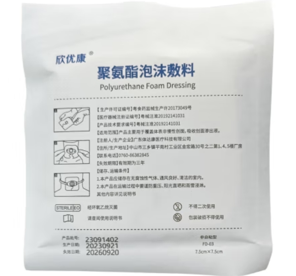 粵械注準20212140383/佛山市優(yōu)特醫(yī)療科技有限公司 有效期至:2026-03-11聚氨酯泡沫敷料