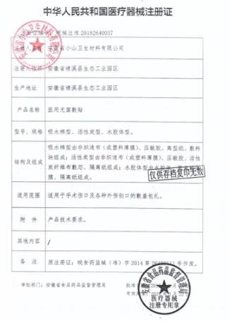 皖食藥監(jiān)械(準(zhǔn))字2014第2640111號/安徽省小山衛(wèi)生材料有限公司 有效期至:2018-05-08醫(yī)用無菌敷貼