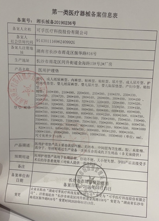 鄂潛械備20170003號/湖北省潛江市江赫醫(yī)用材料有限公司醫(yī)用護理墊