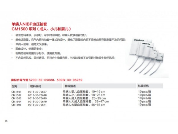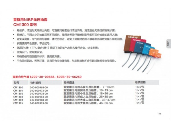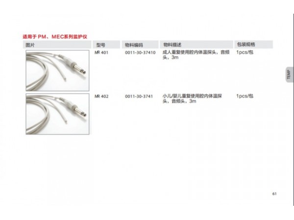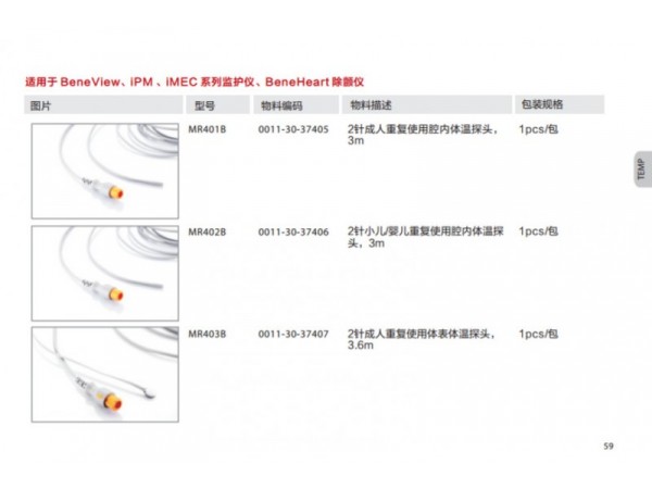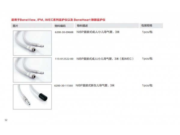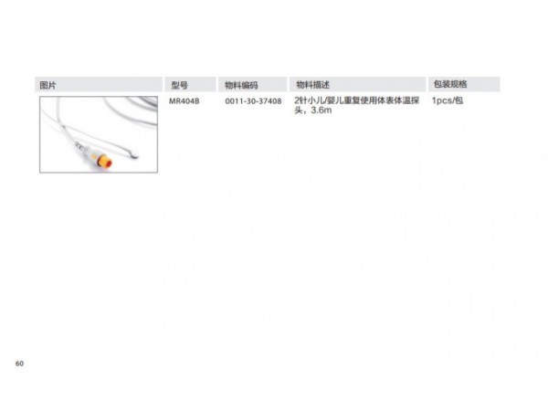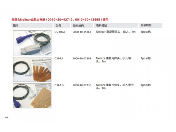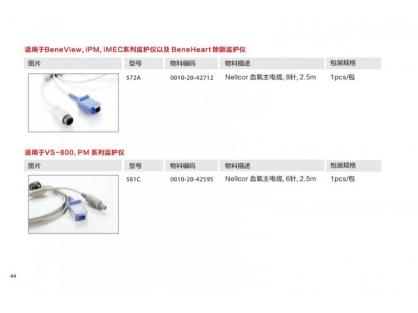該產(chǎn)品配套用于監(jiān)護(hù)設(shè)備,用于無創(chuàng)地測量患者的血氧飽和度和脈搏率。M1191B、M1191BL適用于體重大于50kg的成人;M1192T適用于體重15-50kg的小兒;M1193A和M1193T適用于體重1-4kg的新生兒;M1194A適用于體重大于40kg的成人和小兒;M1195A適用于4-15kg的嬰兒;M1196A和M1196T適用于體重大于40Kg的成人。