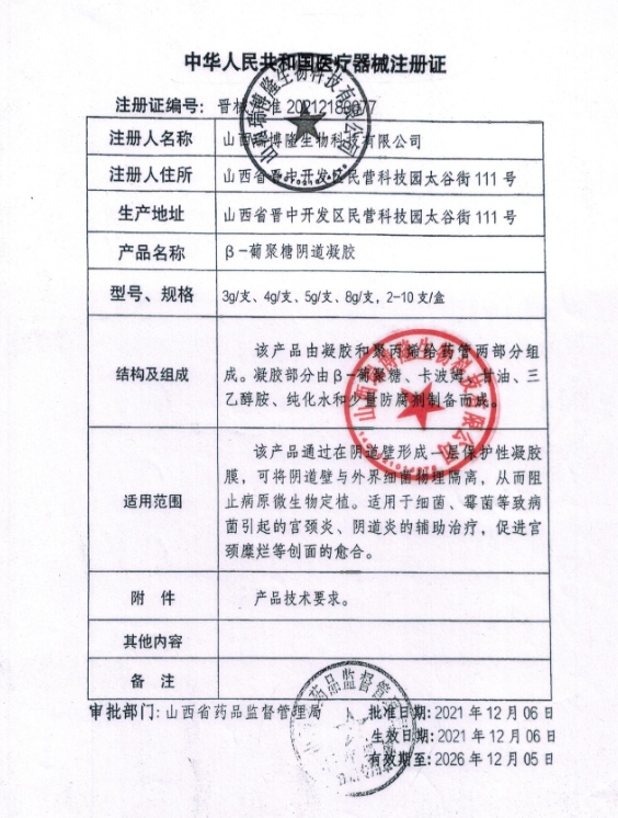 1、注冊人住所由“山西省晉中開發(fā)區(qū)民營科技園太谷街111號”變更為“山西省晉中市山西綜改示范區(qū)晉中開發(fā)區(qū)匯通產(chǎn)業(yè)園區(qū)民營科技園太谷街111號”n2、生產(chǎn)地址由“山西省晉中開發(fā)區(qū)民營科技園太谷街111號”變更為“山西省晉中市山西綜改示范區(qū)晉中開發(fā)區(qū)匯通產(chǎn)業(yè)園區(qū)民營科技園太谷街111號”