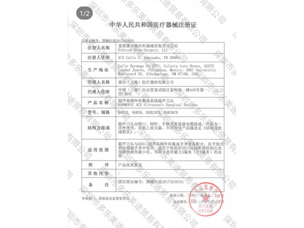 山東省醫(yī)用耗材限價(jià)掛網(wǎng)數(shù)據(jù) 超聲高頻外科集成系統(tǒng)超聲刀頭 國(guó)械注進(jìn)20173016331 HAR23CN 2348.0000