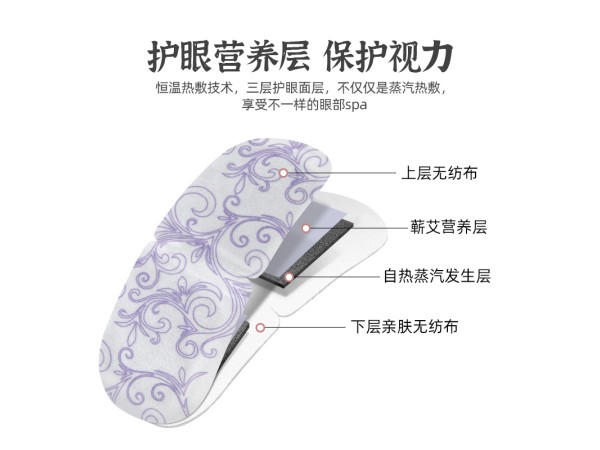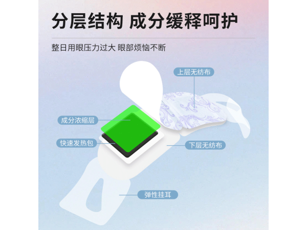 本品以發(fā)熱袋、敷膜無(wú)紡布和含有壓敏膠的無(wú)紡布及硅油紙制成。