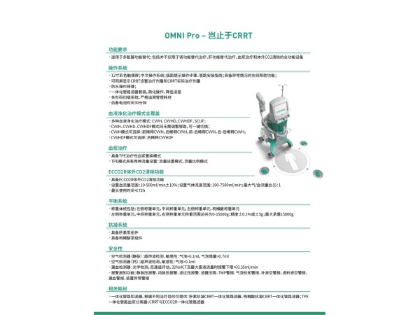 該產(chǎn)品在體外血液凈化治療過程中提供動力及安全監(jiān)測,與兼容的一次性使用耗材聯(lián)合使用,臨床適用于體重30kg及以上患者,支持連續(xù)性腎臟替代治療、體外二氧化碳清除治療、血漿置換治療。