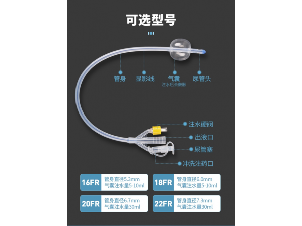一次性使用超滑導(dǎo)尿管根據(jù)腔管結(jié)構(gòu)不同可分為A型、B型、C型、D型、E型五種型號(hào),同時(shí)根據(jù)管身公稱外徑不同可分為2.0mm(6Fr)、2.7mm(8Fr)、3.3mm(10Fr)、4.0mm(12Fr)、4.7mm(14Fr)、5.3mm(16Fr)、6.0mm(18Fr)、6.7mm(20Fr)、7.3mm(22Fr)、8.0mm(24Fr)、8.7mm(26Fr)共11種規(guī)格。