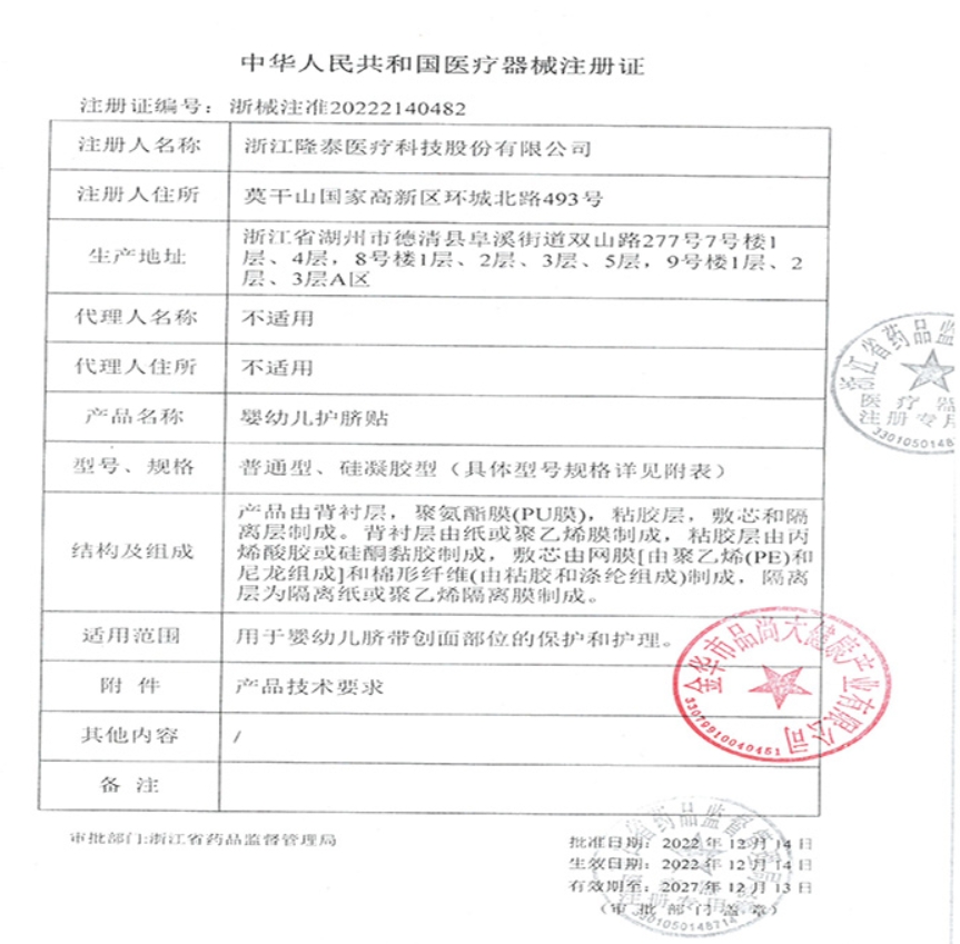 用于嬰幼兒臍帶創(chuàng)面部位的保護和護理。