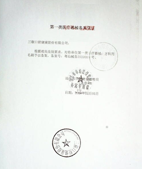 湘常械備20220052號(hào)/湖南長(zhǎng)晟醫(yī)療科技有限公司牙科用毛刷
