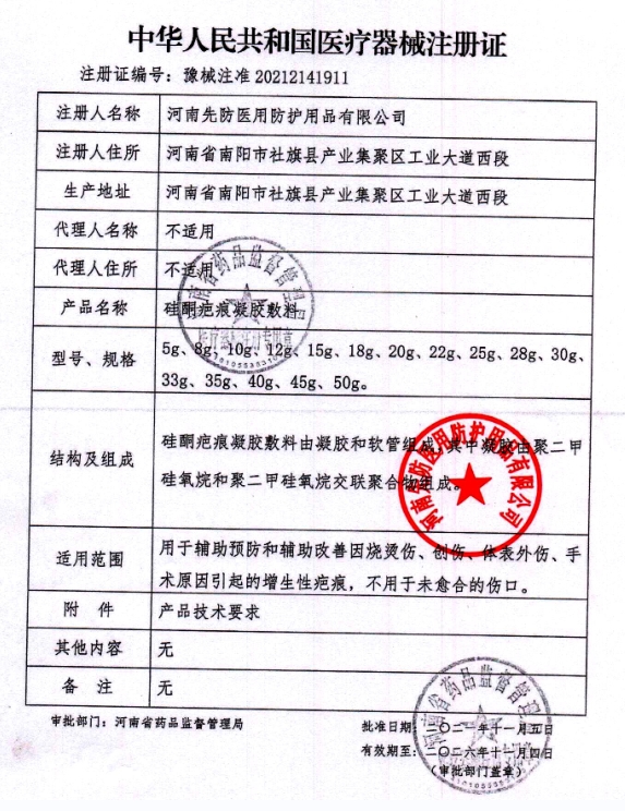 | 湖南醫(yī)用耗材擬掛產(chǎn)品公示(第四十二批) | 硅酮疤痕凝膠敷料 | 豫械注準(zhǔn)20212141911 | 15g | 390 |