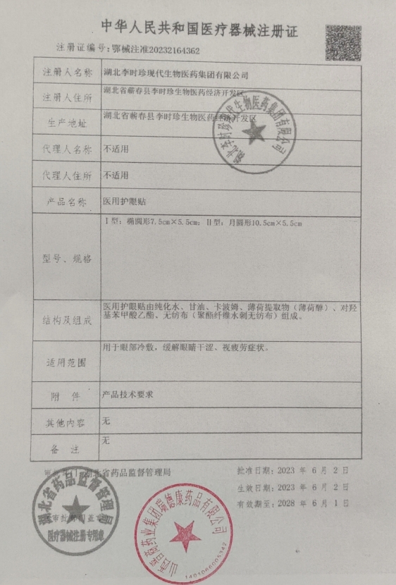湘械注準(zhǔn)20232140265/湖南敷爾斯生物醫(yī)藥有限公司 有效期至:2028-03-15醫(yī)用護(hù)眼貼