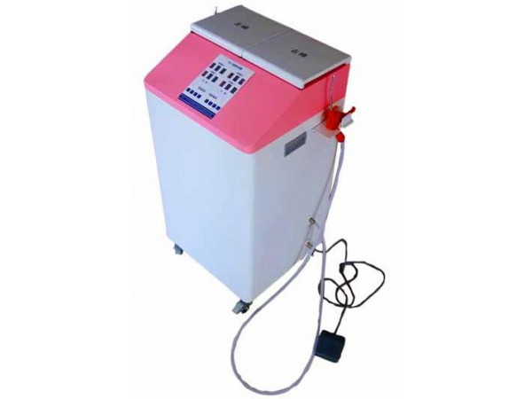 醫(yī)用沖洗器由沖洗噴槍、主機、腳踏沖洗開關(guān)、噴頭及硅膠管組成,按結(jié)構(gòu)分為單桶推車式和雙桶推車式。
