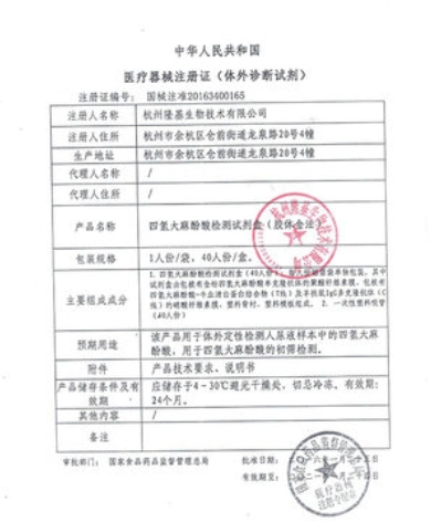本產(chǎn)品用于體外定性檢測人尿液樣本中的四氫大麻酚酸,用于四氫大麻酚酸的初篩檢測。
