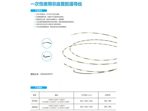 贛械注準(zhǔn)20192020039/江西狼和醫(yī)療器械有限公司 有效期至:2024-02-10一次性使用非血管腔道導(dǎo)絲