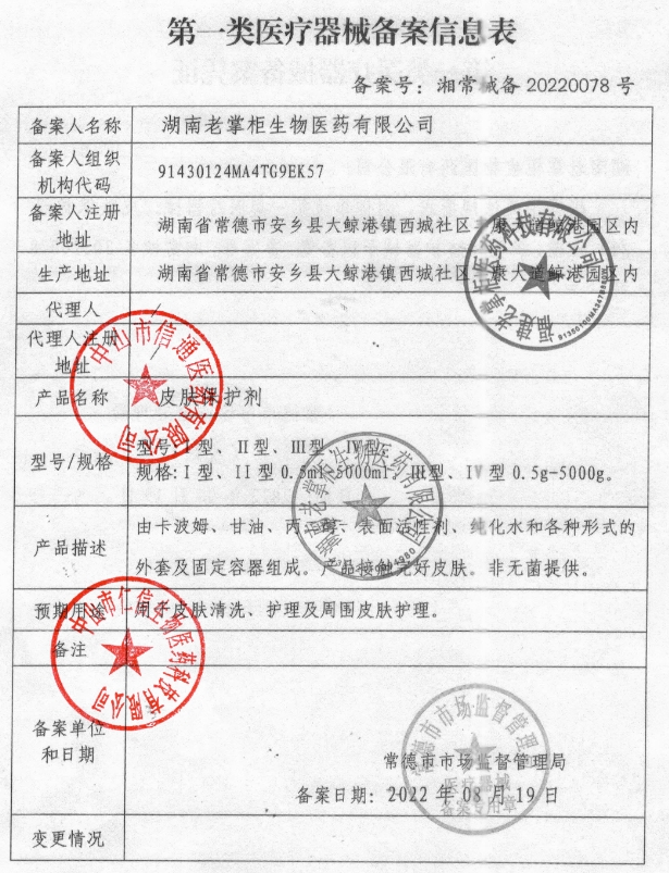 湖南醫(yī)用耗材擬掛產(chǎn)品公示(第四十四批) 皮膚保護(hù)劑 湘常械備20220078號(hào) 100ml 186