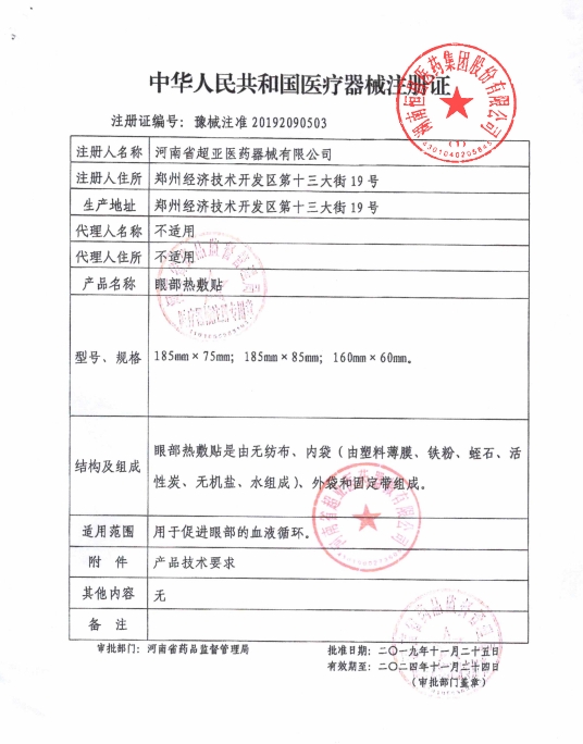 豫械注準(zhǔn)20252090246/夏邑縣久之康醫(yī)療器械有限公司 有效期至:2030-04-01眼部熱敷貼