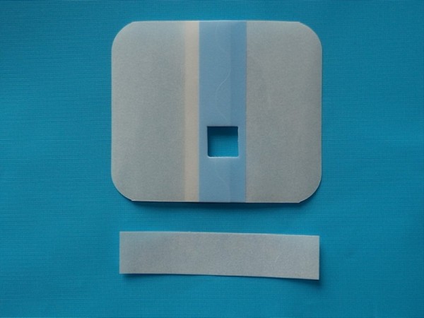 A型是在醫(yī)用聚氨酯薄膜上涂覆醫(yī)用粘合劑制成,兩面有離型材料保護(hù)。B型是在醫(yī)用聚氨酯薄膜上涂覆醫(yī)用粘合劑后,覆上人造纖維材料的吸水墊制成,兩面有離型材料保護(hù)。C型是在無紡布上涂覆醫(yī)用粘合劑后,覆上人造纖維材料的吸水墊制成,單面有離型材料保護(hù)。D型是在無紡布上復(fù)合醫(yī)用聚氨酯薄膜,涂覆醫(yī)用粘合劑后,覆上人造纖維材料的吸水墊制成,單面有離型材料保護(hù)。E型是在無紡布上涂覆醫(yī)用粘合劑后,覆上含甲殼素成分的人造纖維材料的吸水墊制成,單面有離型材料保護(hù)。F型是在無紡布上涂覆醫(yī)用粘合劑后,覆上含銀離子成分的人造纖維材料的吸
