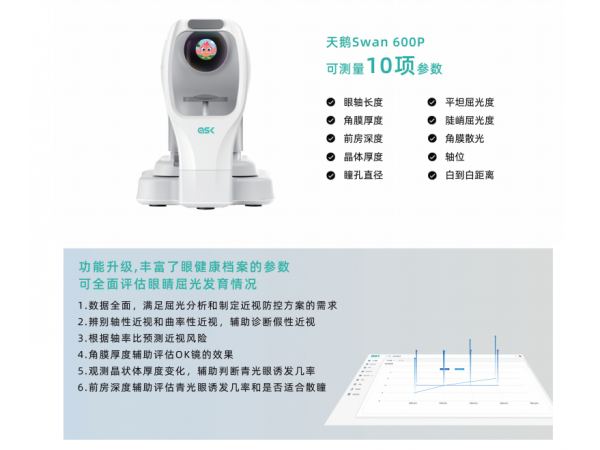 用于測量具有固視能力并且年齡在3歲及以上人群的眼軸長度、角膜厚度、前房深度、晶狀體厚度、角膜曲率半徑、軸位角、白到白距離、瞳孔直徑8個參數(shù)。