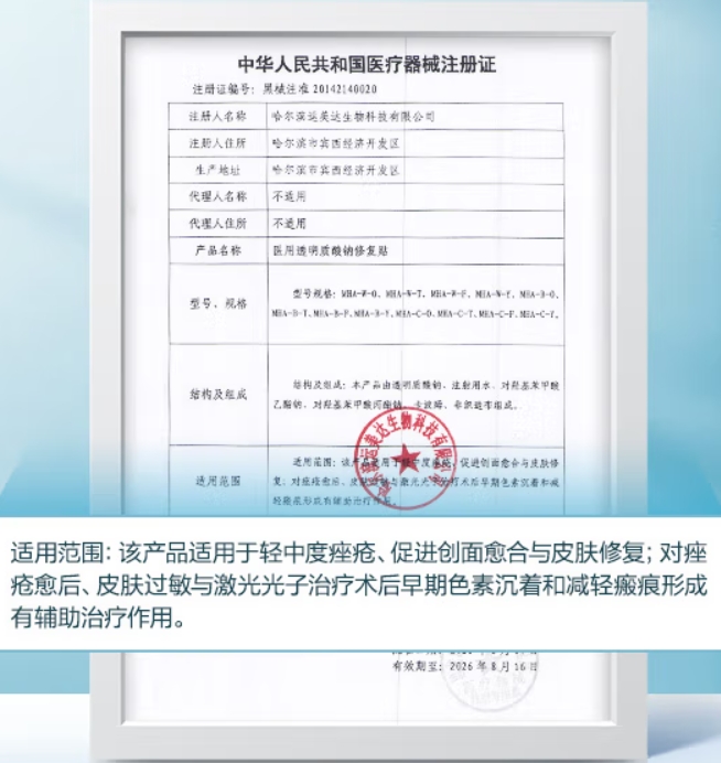該產(chǎn)品適用于輕中度痤瘡、促進(jìn)創(chuàng)面愈合與皮膚修復(fù);對痤瘡愈后、皮膚過敏與激光光子治療術(shù)后早期色素沉著和減輕瘢痕形成有輔助治療作用。