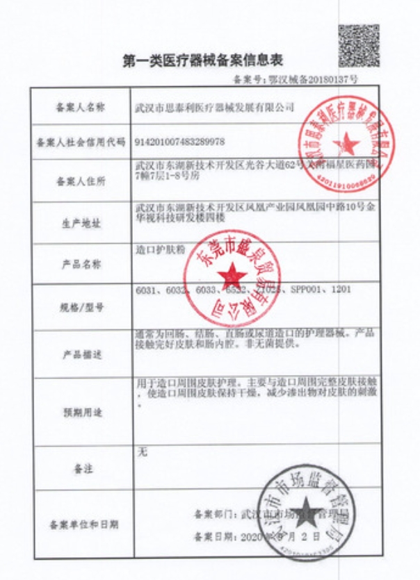 鄂漢械備20200928號/賽百年醫(yī)療科技(武漢)有限公司造口護(hù)膚粉