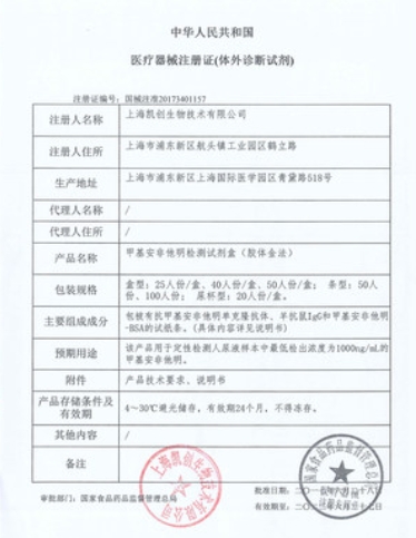 國(guó)械注準(zhǔn)20193400048/廈門(mén)中生朗捷生物技術(shù)有限公司 有效期至:2024-01-16甲基安非他明檢測(cè)試劑盒(膠體金法)