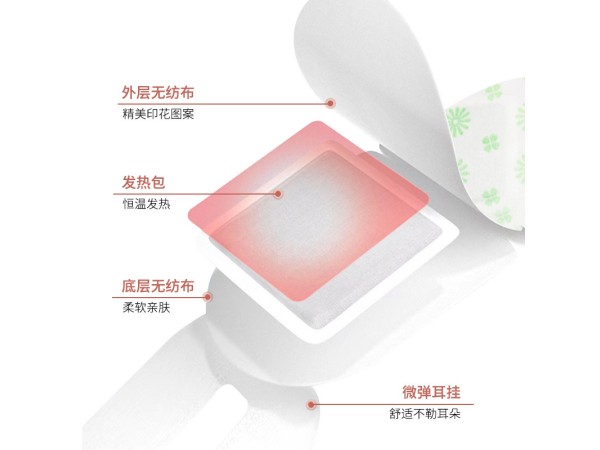 本品以發(fā)熱袋、敷膜無紡布和含有壓敏膠的無紡布及硅油紙制成。