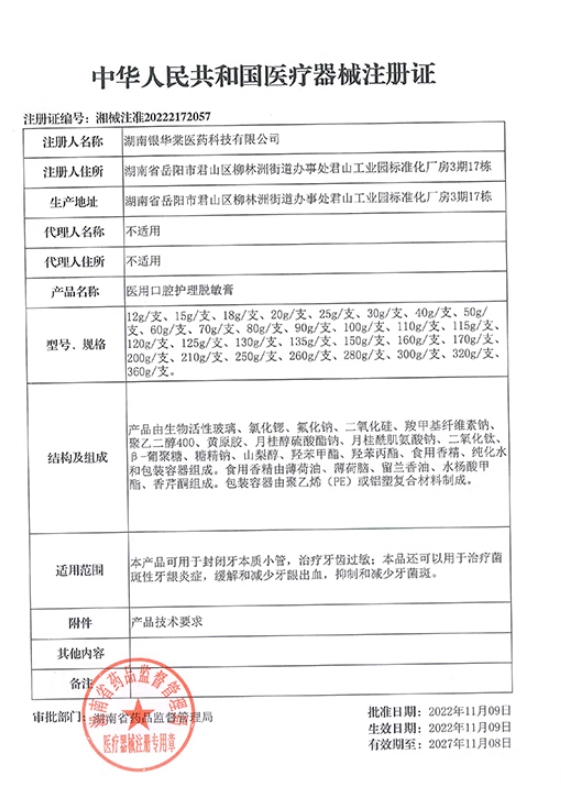 云南+常態(tài)掛網(wǎng)項(xiàng)目 醫(yī)用口腔護(hù)理脫敏膏 湘械注準(zhǔn)20222172057 (醫(yī)用口腔護(hù)理脫敏膏)120g/支 79.90