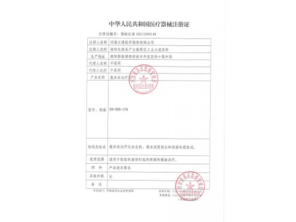 本文件與“毫米波治療儀(注冊證編號:豫械注準(zhǔn)20212090148)”醫(yī)療器械注冊證共同使用。