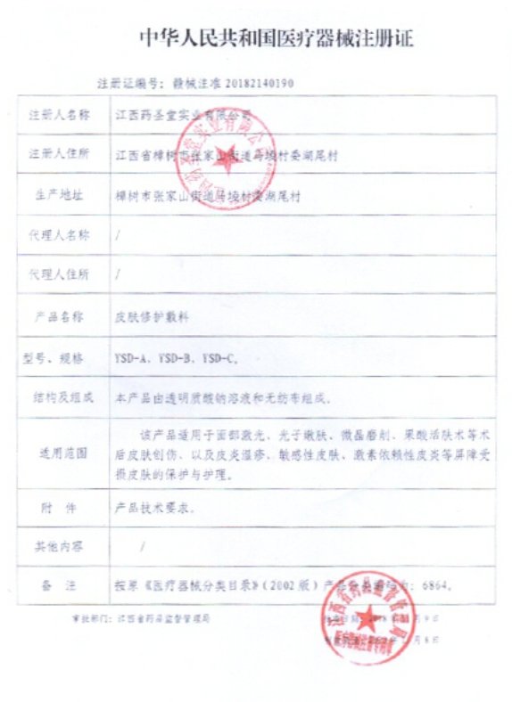 陜西省第四批普通耗材網(wǎng)上陽光采購 皮膚修護敷料 贛械注準20182140190 YSD-B 52
