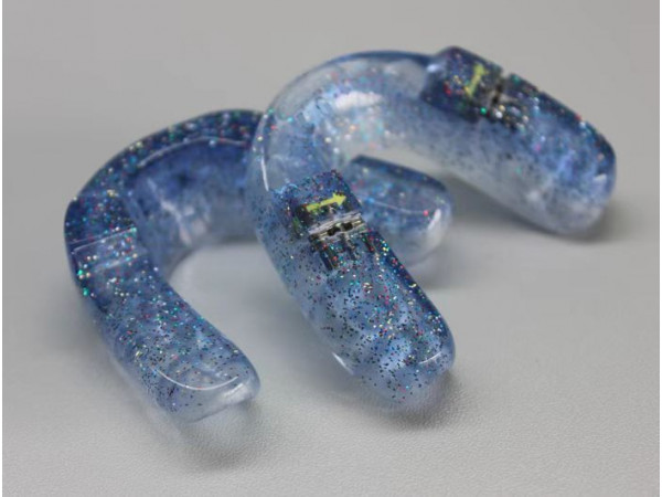 由上牙套(正畸基托聚合物、牙膠片、擴弓螺絲組成)和下牙套(正畸基托聚合物、 牙膠片組成)兩部分組成,接觸人體時間小于30天。