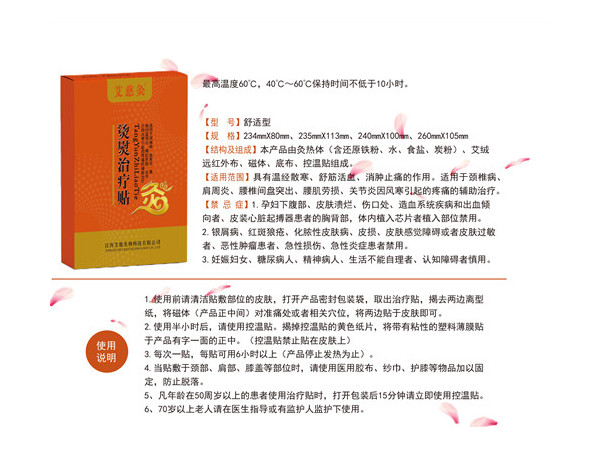 蘇食藥監(jiān)械(準(zhǔn))字2014第2261230號/鹽城艾澤生物科技有限公司 有效期至:2019-09-04燙熨治療貼