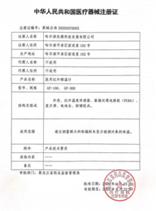 桂械注準20202070155/廣西中恒醫(yī)療科技有限公司 有效期至:2026-05-13醫(yī)用紅外額溫計