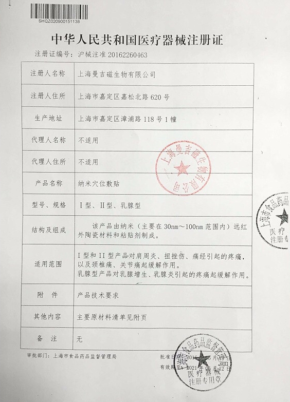 該產(chǎn)品由納米(主要在30nm~100nm范圍內(nèi))遠(yuǎn)紅外陶瓷材料和粘貼劑制成。