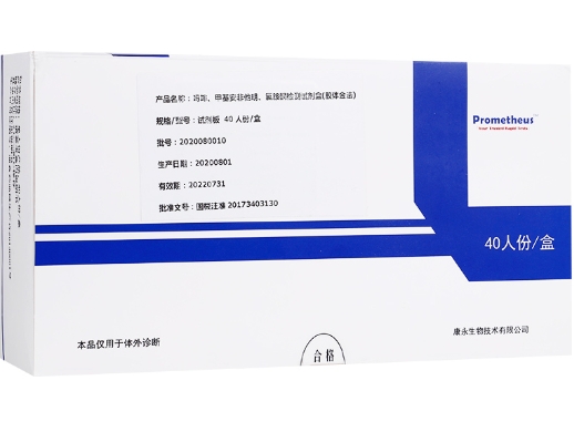 試劑板:40人份盒;試劑盒:40人份盒;尿杯:25人份盒。