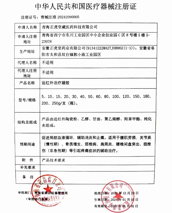 注冊(cè)地址:青海省西寧市東川工業(yè)園區(qū)中小企業(yè)創(chuàng)業(yè)園C區(qū)8號(hào)樓5樓5-23078;生產(chǎn)地址:安徽省阜陽市太和縣墳臺(tái)鎮(zhèn)郭小廟工業(yè)園區(qū)(委托生產(chǎn)),變更為青海省西寧市城東區(qū)東川工業(yè)園昆侖東路5號(hào)創(chuàng)業(yè)園D區(qū)二期9號(hào)樓