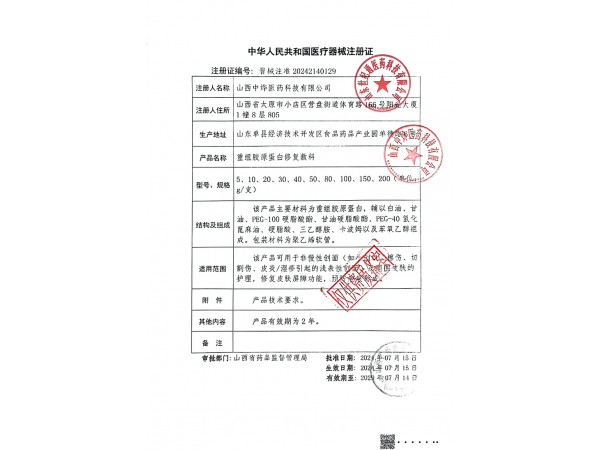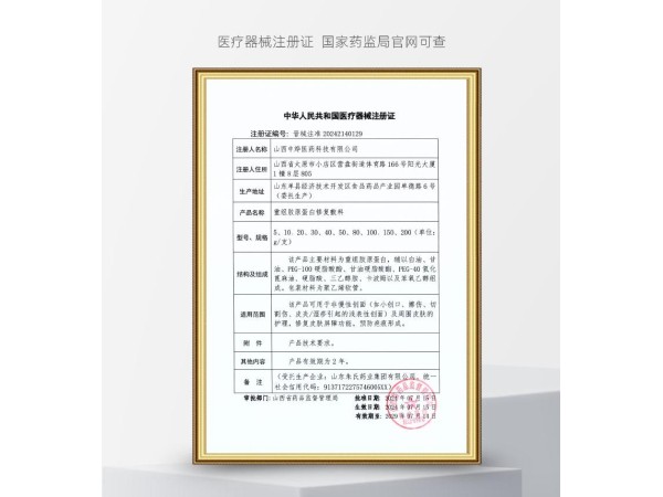 2025年第五批高值、低值醫(yī)用耗材掛網(wǎng)產(chǎn)品列表 重組膠原蛋白修復(fù)敷料 晉械注準(zhǔn)20242140129 40g 320