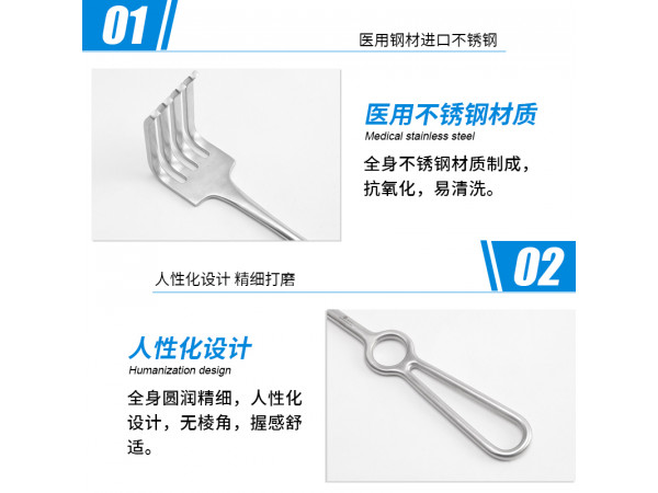 由頭部和桿部組成,頭部帶鉤頭。采用不銹鋼或鈦合金材料制成。非無菌提供。使用前由使用機構(gòu)根據(jù)說明書進行滅菌。不在內(nèi)窺鏡下使用。