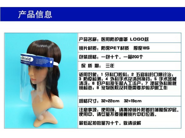 產(chǎn)品名:頭戴式醫(yī)院用防護(hù)面罩防飛濺面屏外科手術(shù)防血濺防霧醫(yī)療護(hù)目口罩