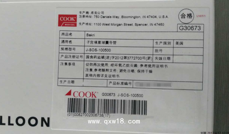 產(chǎn)品名:美國庫克Bakri 子宮填塞球囊導(dǎo)管J-SOS-100500