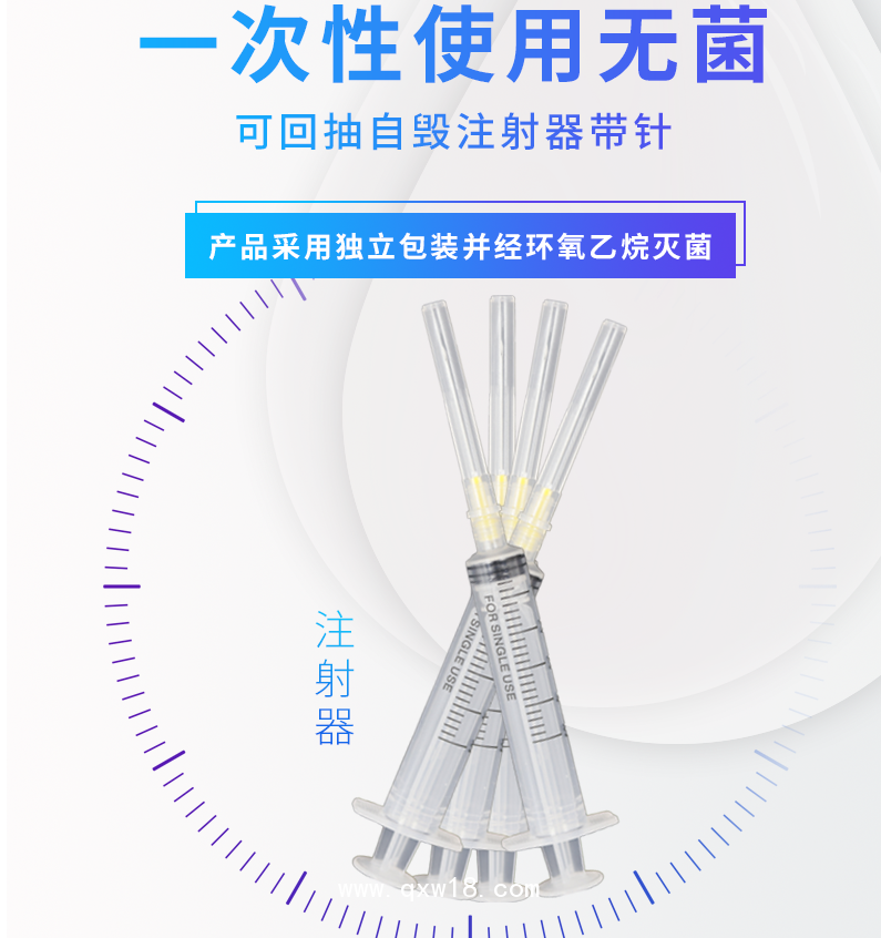 產品名:5毫升 一次性使用無菌可回抽自毀注射器帶針 注射器