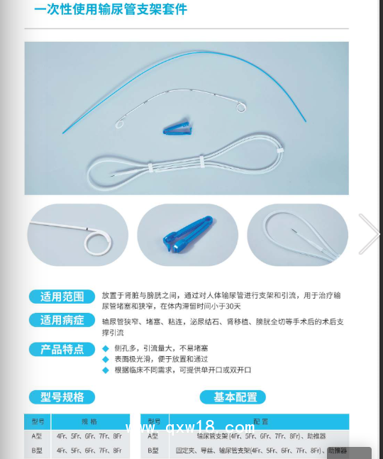 產(chǎn)品名:一次性使用輸尿管支架套件