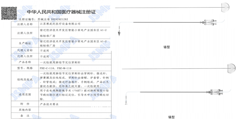 產(chǎn)品名:一次性使用肺結(jié)節(jié)定位穿刺針
