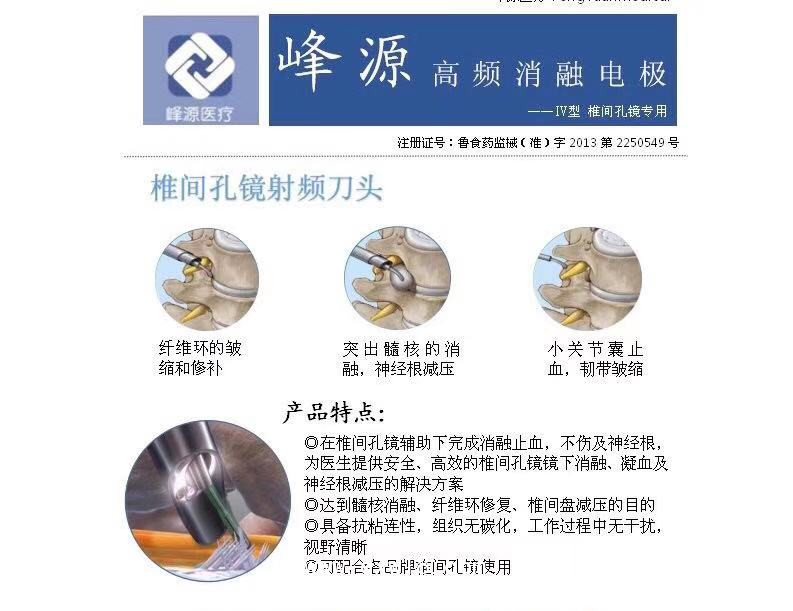 產(chǎn)品名:椎間孔鏡專用一次性等離子射頻消融刀頭