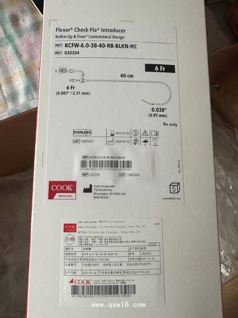 產(chǎn)品名:庫克血管鞘KCFW-6.0-38-40-RB-BLKN-HC