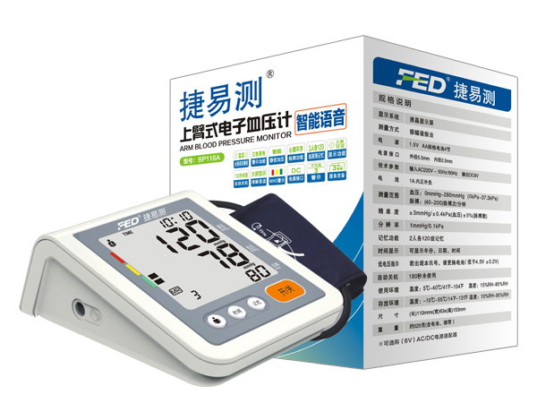 產(chǎn)品名:捷易測電子血壓計BP118A背光大屏智能臂式血壓儀器