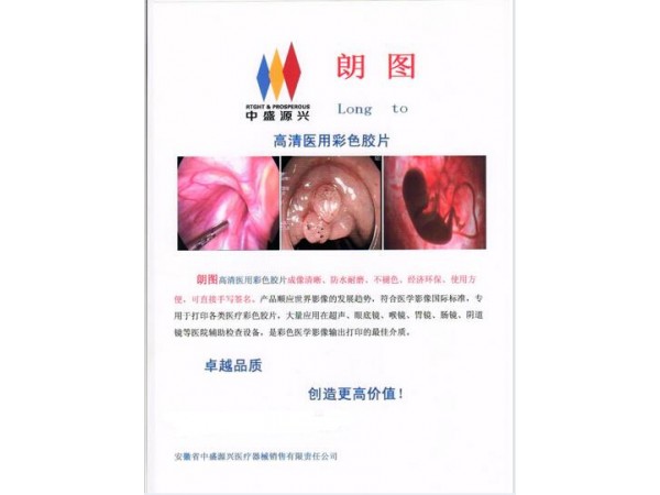 朗圖高清醫(yī)用彩色膠片成像清晰、防水耐磨、不褪色、經(jīng)濟(jì)環(huán)保、使用方便,可直接手寫簽名。產(chǎn)品順應(yīng)世界影像的發(fā)展趨勢(shì),符合醫(yī)學(xué)