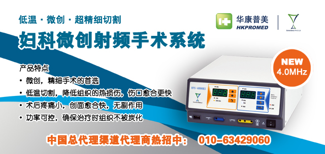 主要參展產品:RFS-4000KS型婦科射頻leep刀采用先進的4.0MHZ射頻切割技術,國內唯一一款真正的射頻leep刀,結合一系列形態(tài)各異的婦科專用電極治療各種宮頸病變,可以連續(xù)切除宮頸癌發(fā)病高危區(qū)(宮頸鱗柱上皮交界處),有效預防宮頸癌,使用它手術安全、有效,不需住院,并發(fā)癥少,并可保留完整、連續(xù)的標本進行病理檢查,明顯降低宮頸癌的誤診率和漏診率。它是目前國內最先進的治療宮頸疾病手段。