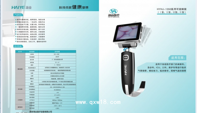 可視喉鏡,批準(zhǔn)文號:陜械注準(zhǔn)20152220128,醫(yī)療器械招商企業(yè)西安海業(yè)醫(yī)療設(shè)備有限公司招商產(chǎn)品。可視喉鏡招商詳情請進入>>