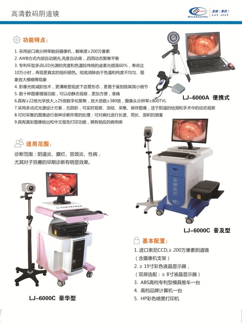 診斷范圍:陰道炎、糜爛、宮頸炎、性病,尤其對子宮癌的早期診斷有明顯效果,成為婦科規(guī)范科學(xué)檢查的必備儀器。