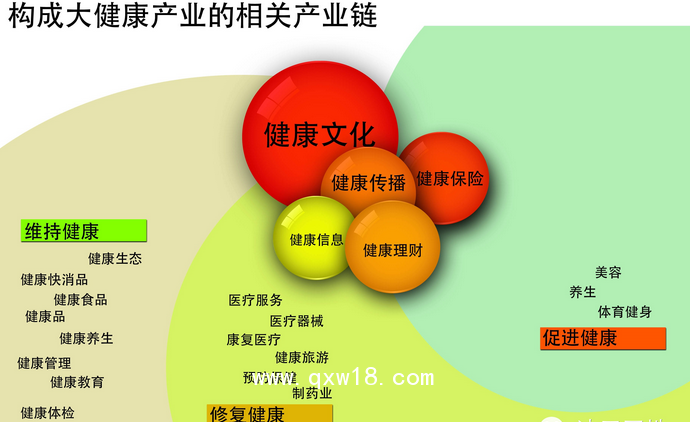 疾病預(yù)防、醫(yī)美機(jī)構(gòu)、健康體檢中心、第三方醫(yī)學(xué)檢測(cè)、衛(wèi)生檢測(cè)、專業(yè)護(hù)理、保健康復(fù)、心理健康、母嬰照料護(hù)理機(jī)構(gòu)、康體休閑、健康金融投資、大數(shù)據(jù)信息服務(wù)等;