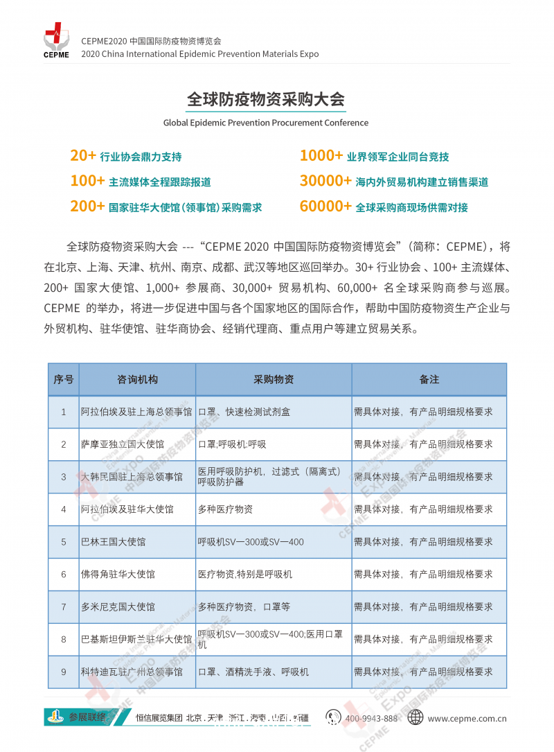 截止目前,CEPME組委會(huì)已收到100多個(gè)國(guó)家政府采購(gòu)需求!